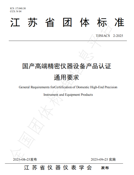 近日,江蘇省儀器儀表學(xué)會(huì)正式批準(zhǔn)發(fā)布團(tuán)體標(biāo)準(zhǔn)《國產(chǎn)高端精密儀器設(shè)備產(chǎn)品認(rèn)證通用要求》(標(biāo)準(zhǔn)編號(hào):T/JSIACS 2 - 2025)。該標(biāo)準(zhǔn)嚴(yán)格依據(jù)《江蘇省儀器儀表學(xué)會(huì)標(biāo)準(zhǔn)管理辦法(試行)》制定,圍繞國產(chǎn)高端精密儀器設(shè)備產(chǎn)品認(rèn)證,在基本要求、國產(chǎn)化要求、品質(zhì)屬性等關(guān)鍵維度作出明確規(guī)范,適用于國產(chǎn)高端精密儀器設(shè)備產(chǎn)品的通用認(rèn)證場(chǎng)景。
