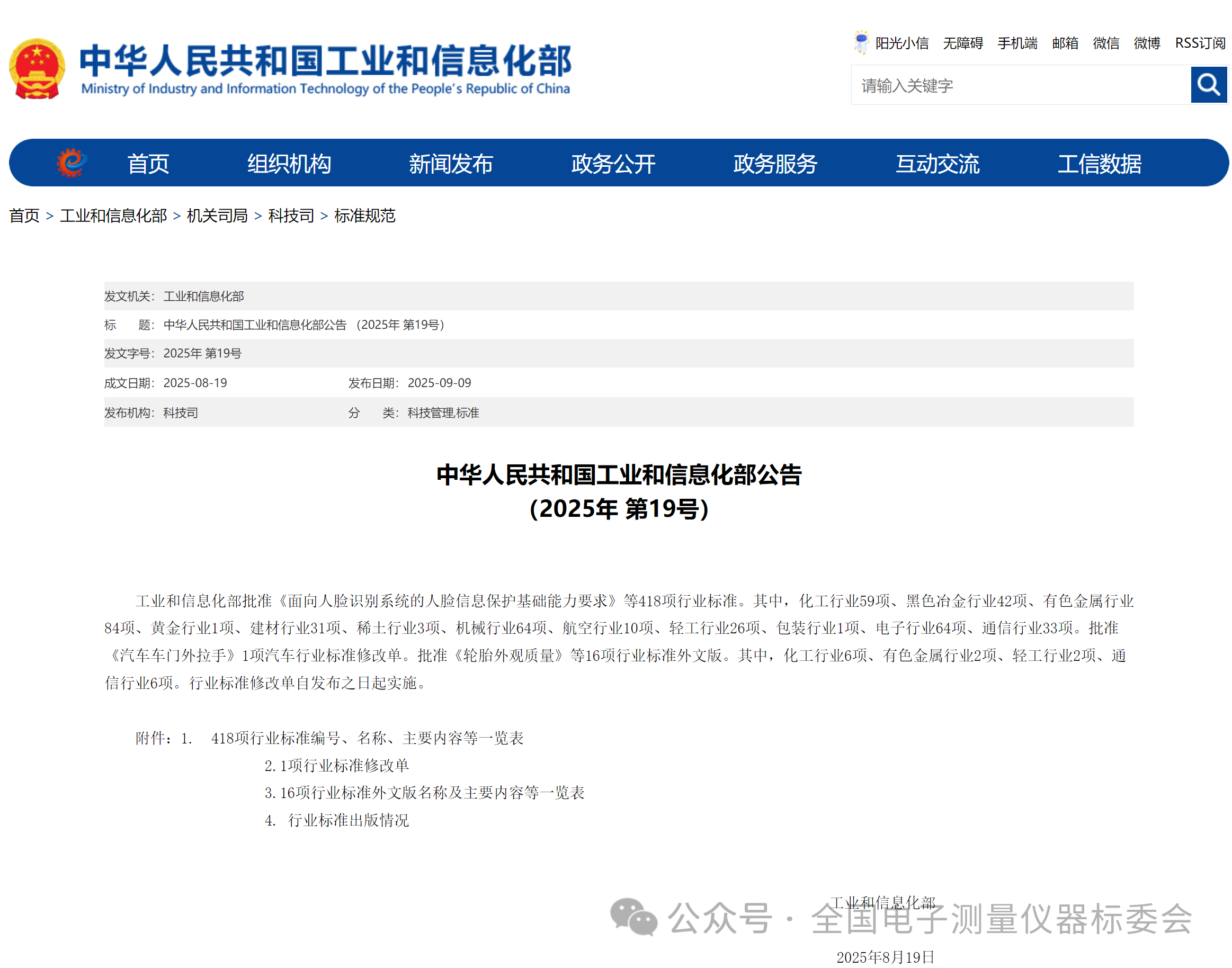 根據(jù)中華人民共和國工業(yè)和信息化部公告(2025年 第19號(hào)),由全國電子測(cè)量?jī)x器標(biāo)準(zhǔn)化技術(shù)委員會(huì)歸口的《鋰電池芯短路測(cè)試儀》(標(biāo)準(zhǔn)號(hào):SJ/T 10230-2025)《電子紅外額溫計(jì)通用規(guī)范》(標(biāo)準(zhǔn)號(hào):SJ/T 10231-2025)等2項(xiàng)電子行業(yè)標(biāo)準(zhǔn)正式發(fā)布。
